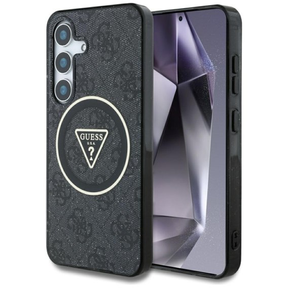 • Etui Guess 4G Glitter Triangle Buttons MagSafe do Samsung Galaxy S25 Plus czarny