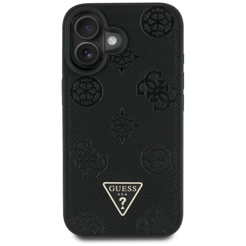 Etui Guess Grained Hot Stamp Peony Triangle Logo MagSafe do iPhone 16 czarny