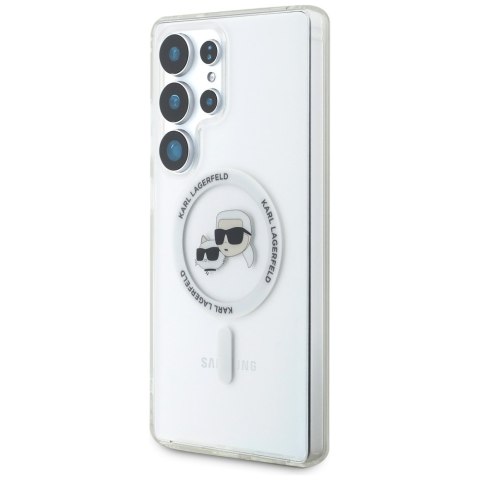 Etui Karl Lagerfeld Button Karl & Choupette Heads Printed Logo MagSafe Samsung Galaxy S25 Ultra biały