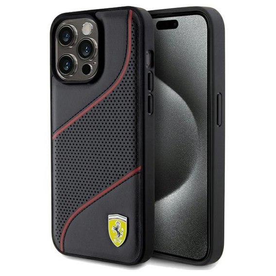 Ferrari FEHCP15XPWAK iPhone 15 Pro Max 6.7" czarny/black hardcase Perforated Waves Metal Logo