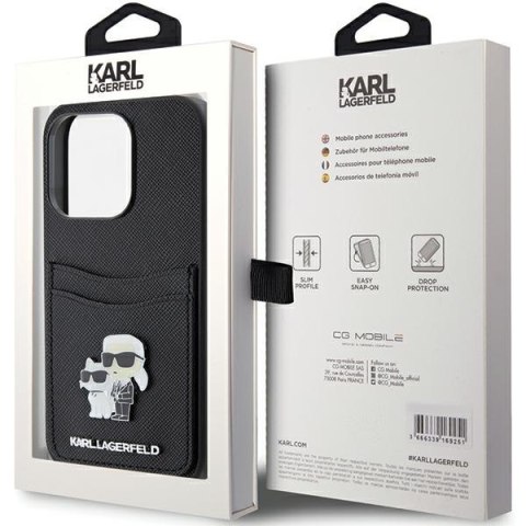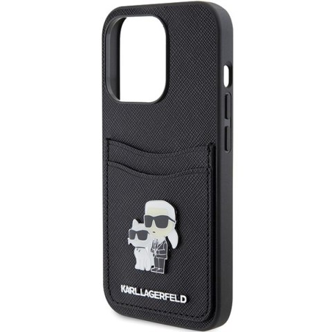 Karl Lagerfeld KLHCP15LSAPKCNPK iPhone 15 Pro 6.1" czarny/black hardcase Saffiano Cardslot Karl&Choupette Metal Pin