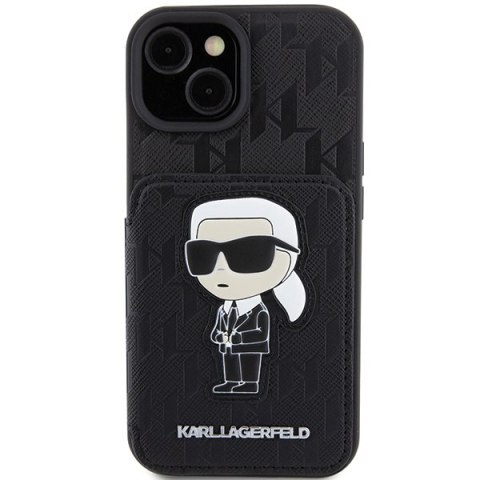 Karl Lagerfeld KLHCP15SSAKKNSCK iPhone 15 6.1" czarny/black hardcase Saffiano Cardslots and Stand Monogram Ikonik Patch