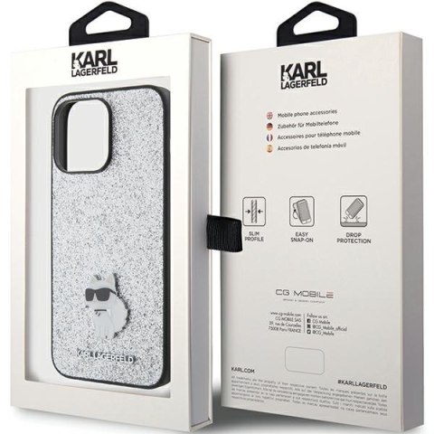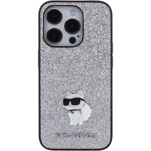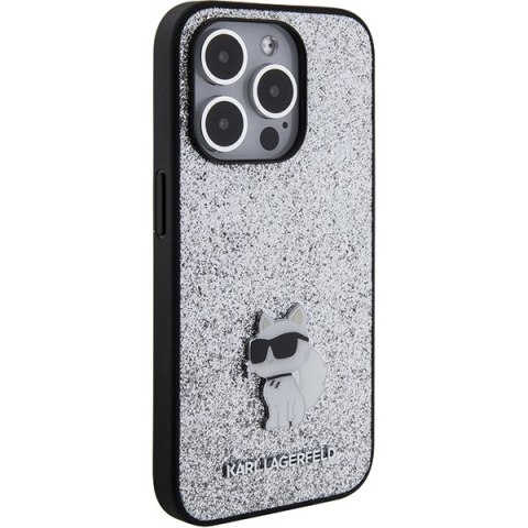 Karl Lagerfeld KLHCP15XGCNPSG iPhone 15 Pro Max 6.7" srebrny/silver hardcase Fixed Glitter Choupette Logo Metal Pin
