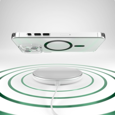 Smukła konstrukcja o grubości zaledwie 2,5 mm nie zwiększa znacząco rozmiarów telefonu, a podniesione krawędzie skutecznie chronią aparat. Dzięki wbudowanemu magnesowi o sile, aż 2800 Gs, nakładka jest w pełni kompatybilna z ładowaniem indukcyjnym oraz technologią MagSafe, nie ograniczając przy tym funkcjonalności uchwytów samochodowych.