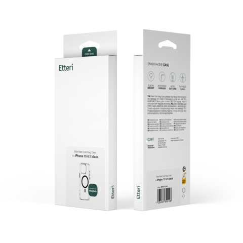 Etteri Color Mag Case posiadają również narożniki antywstrząsowe, które dodatkowo zwiększają ochronę. Całość zapakowana jest w minimalistyczne, papierowe pudełko, podkreślające nowoczesny i ekologiczny charakter produktu.