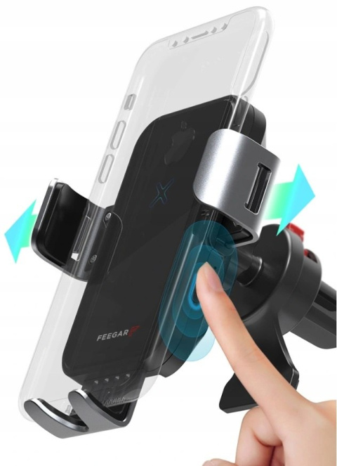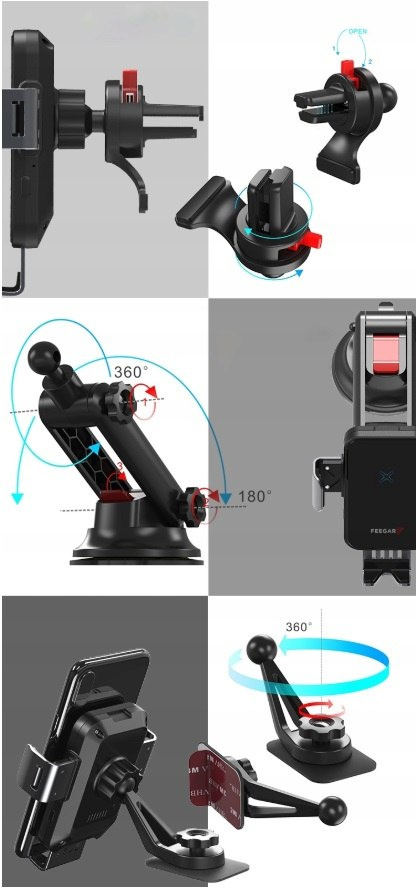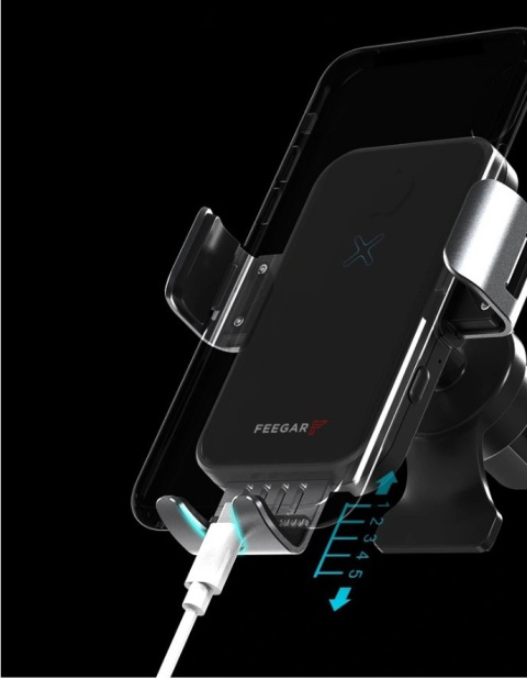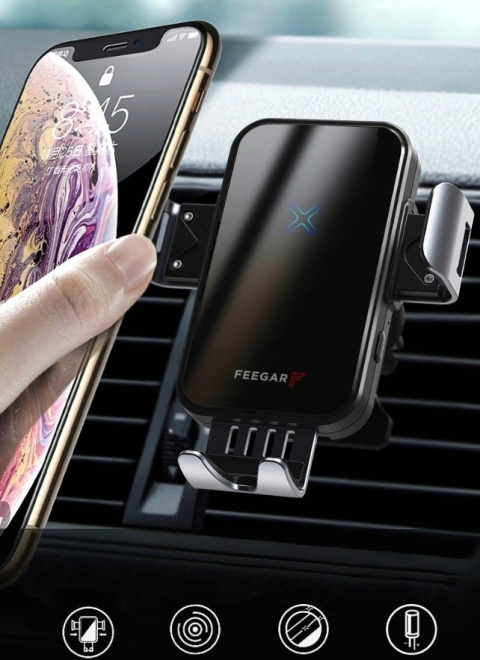 QH300 Pro marki Feegar jest to inteligentny, automatyczny uchwyt do telefonu z funkcją szybkiego ładowania indukcyjnego 15W oraz 3 rodzajami mocowania w samochodzie. Jest to Polska marka w branży elektroniki użytkowej.