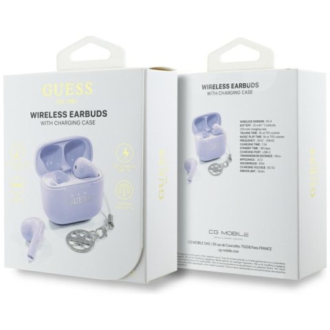 Słuchawki TWS Guess Glossy Effect Printed Classic Logo & Charm lawendowy