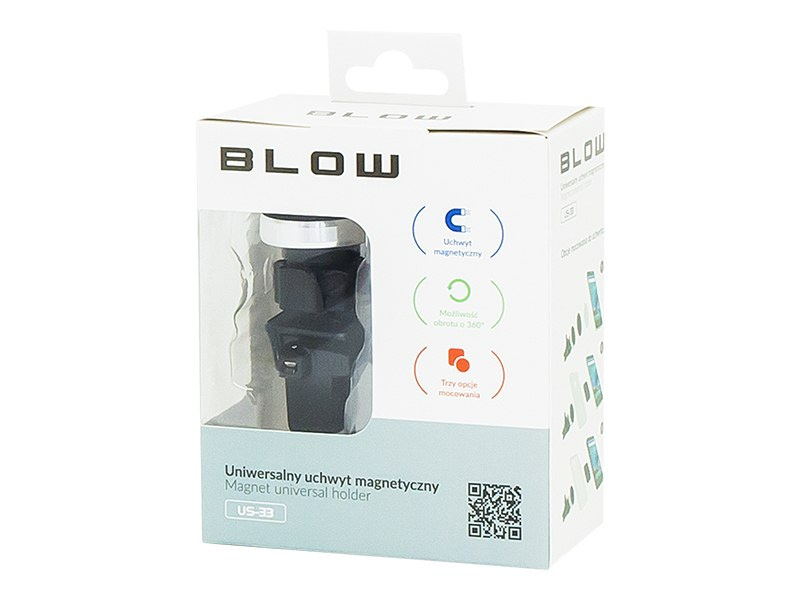 Uchwyt uniwersalny BLOW umożliwia bezpieczne korzystanie z urządzeń przenośnych podczas jazdy. Produkt cechuje się atrakcyjnym wzornictwem i umożliwia ustawienie urządzenia pod dogodnym kątem. Smukły kształt stacji w niewielkim stopniu zmniejsza widoczność podczas jazdy, zarówno z podłączonym smartfonem, jak i bez niego.